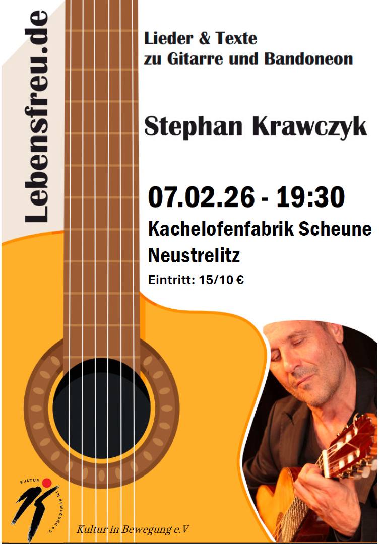 Auf Einladung von Kultur in Bewegung ist Stephan Krawczyk mit seinem aktuellen Programm "Ich dagegen singe" am 7. Februar um 19:30 Uhr in der Scheune der Kachelofenfabrik Neustrelitz zu Gast.